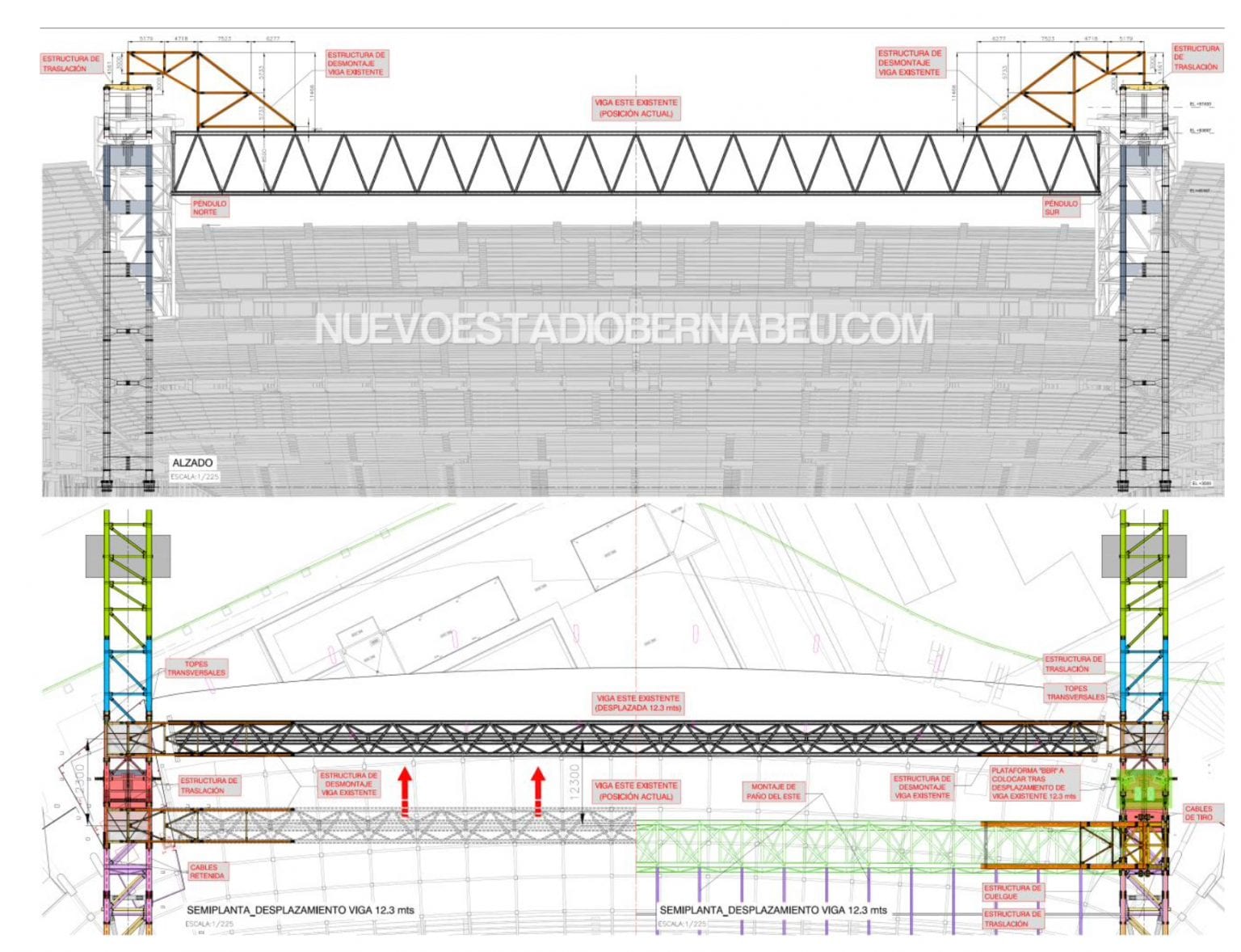 ASI FUE EL PROCEDIMIENTO PARA LA TRASLACIÓN DE LA VIGA ESTE DEL SANTIAGO BERNABÉU