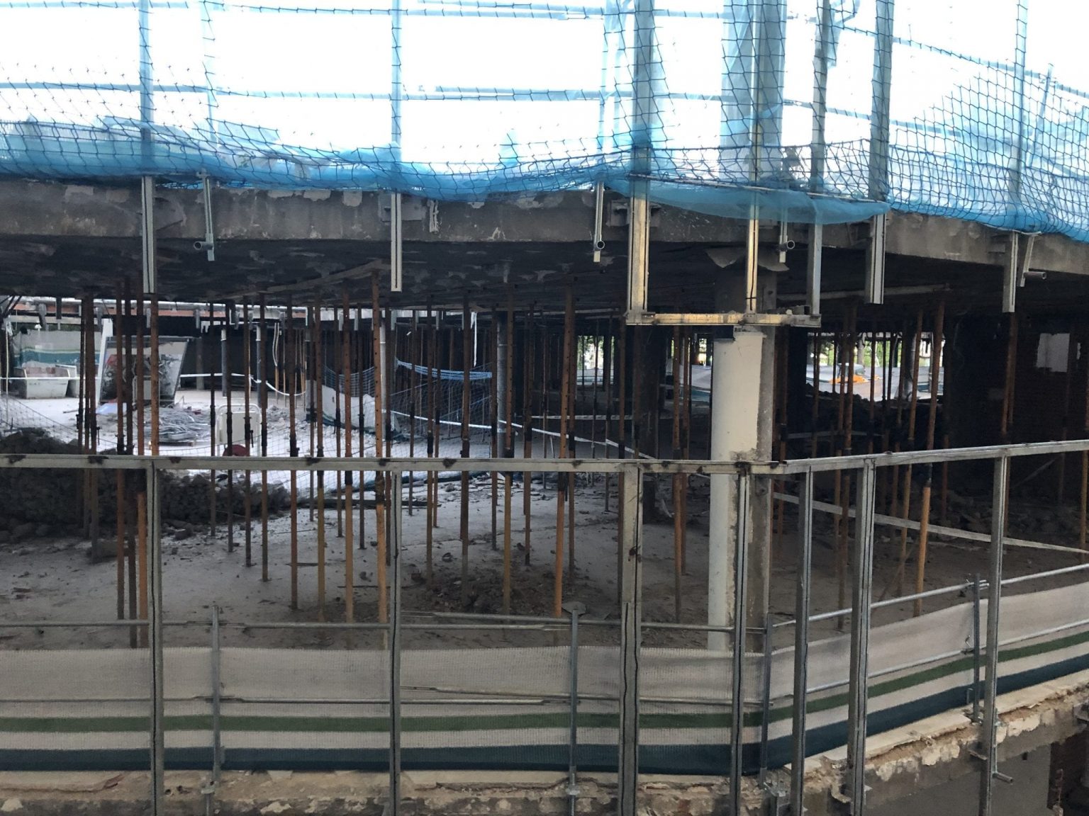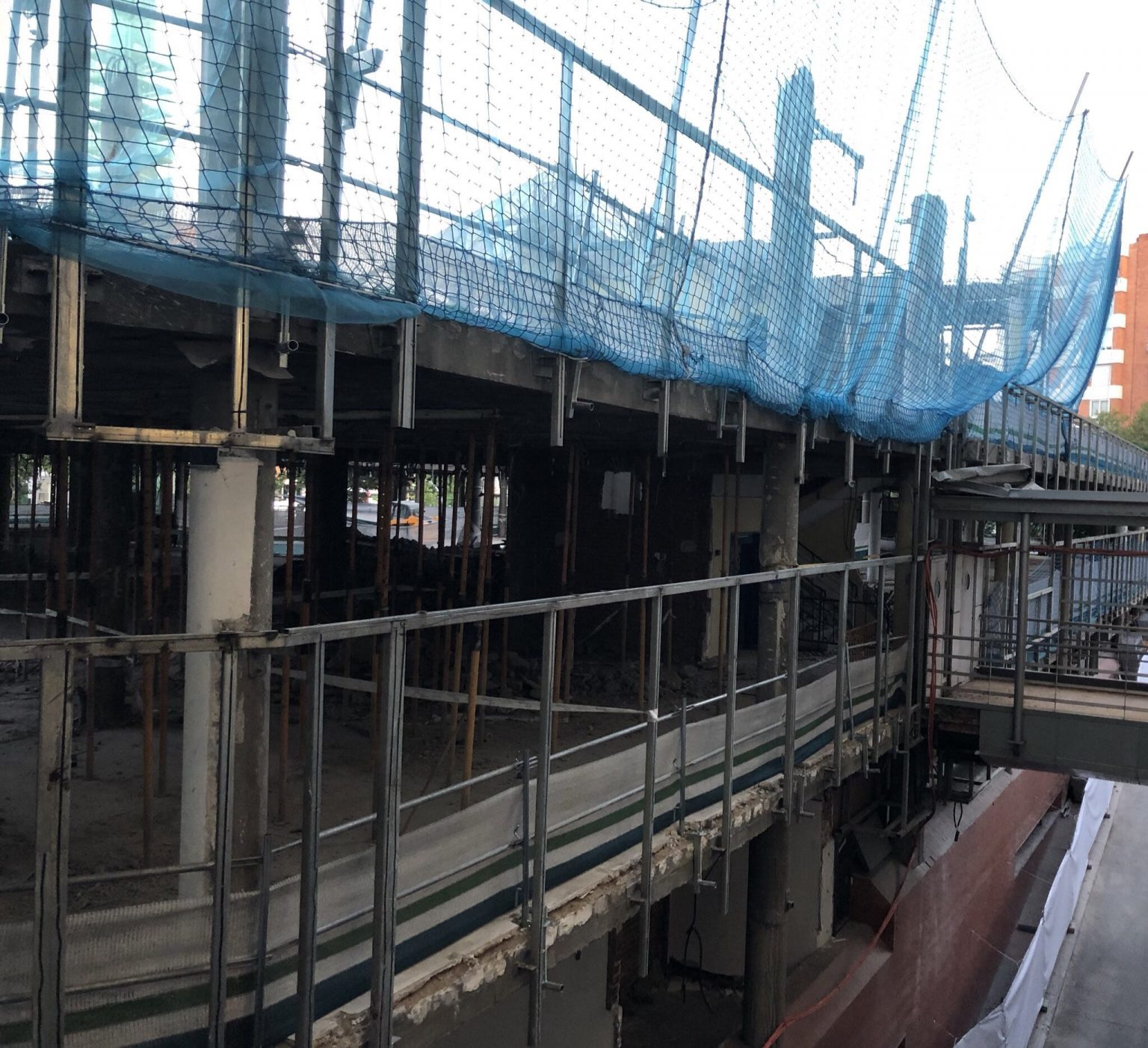 La demolición de La Esquina está en un avanzado estado de ejecución, mientras en el interior se instalan pasarelas para retirada de microcemento y futura instalación de iluminación y sonido.