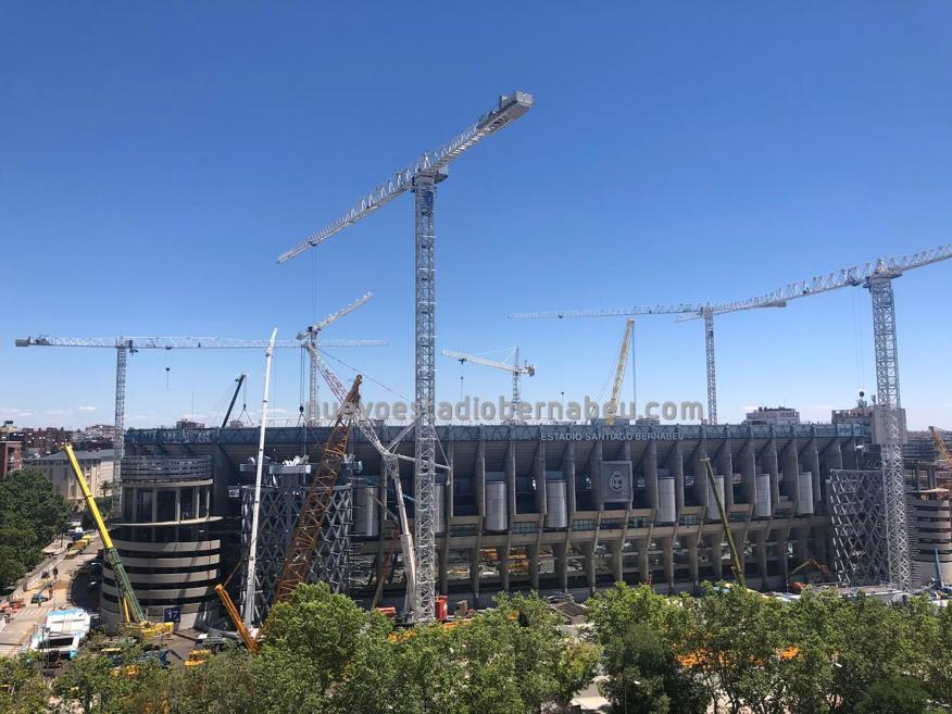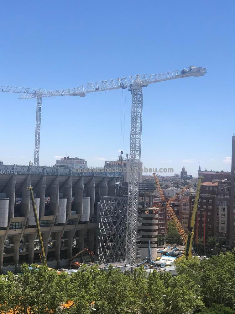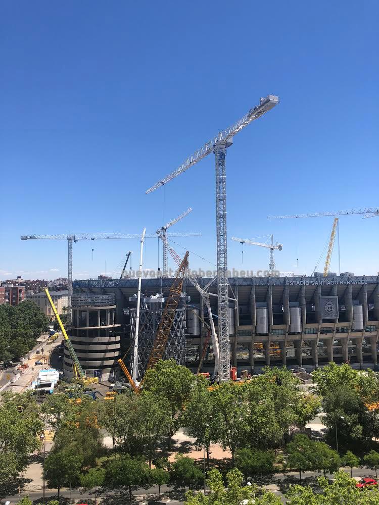 Muy curiosas e impactantes las primeras fotos panorámicas desde el Paseo de la Castellana a las que denominé en Instagram y Twitter “feria internacional de la grúa” por la espectacular implantación que se ve en la obra. No menos de una docena de grúas y plumas están trabajando perfectamente coordinadas, un espectáculo.