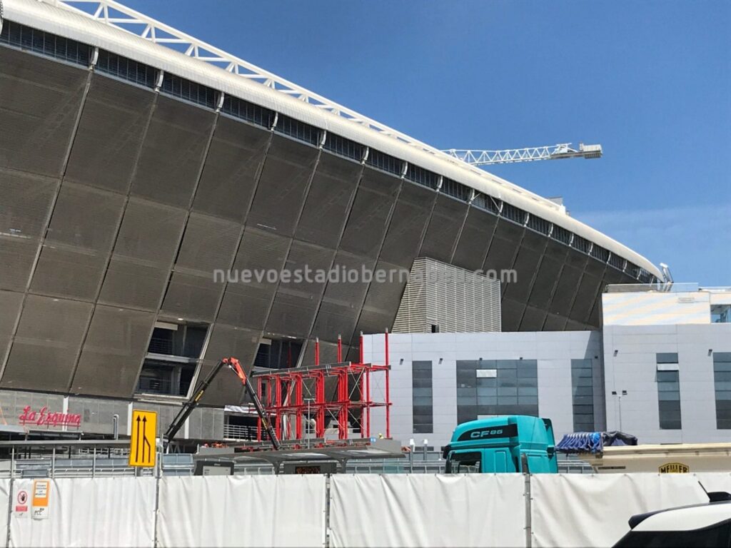 Las obras del Bernabéu han centrado toda la semana en los macro accesos que se montaron a principios de la temporada para dar acceso y evacuacion a los espectadores del lateral este. Ya se han desmontado para proseguir con la demolición pendiente de La Esquina.