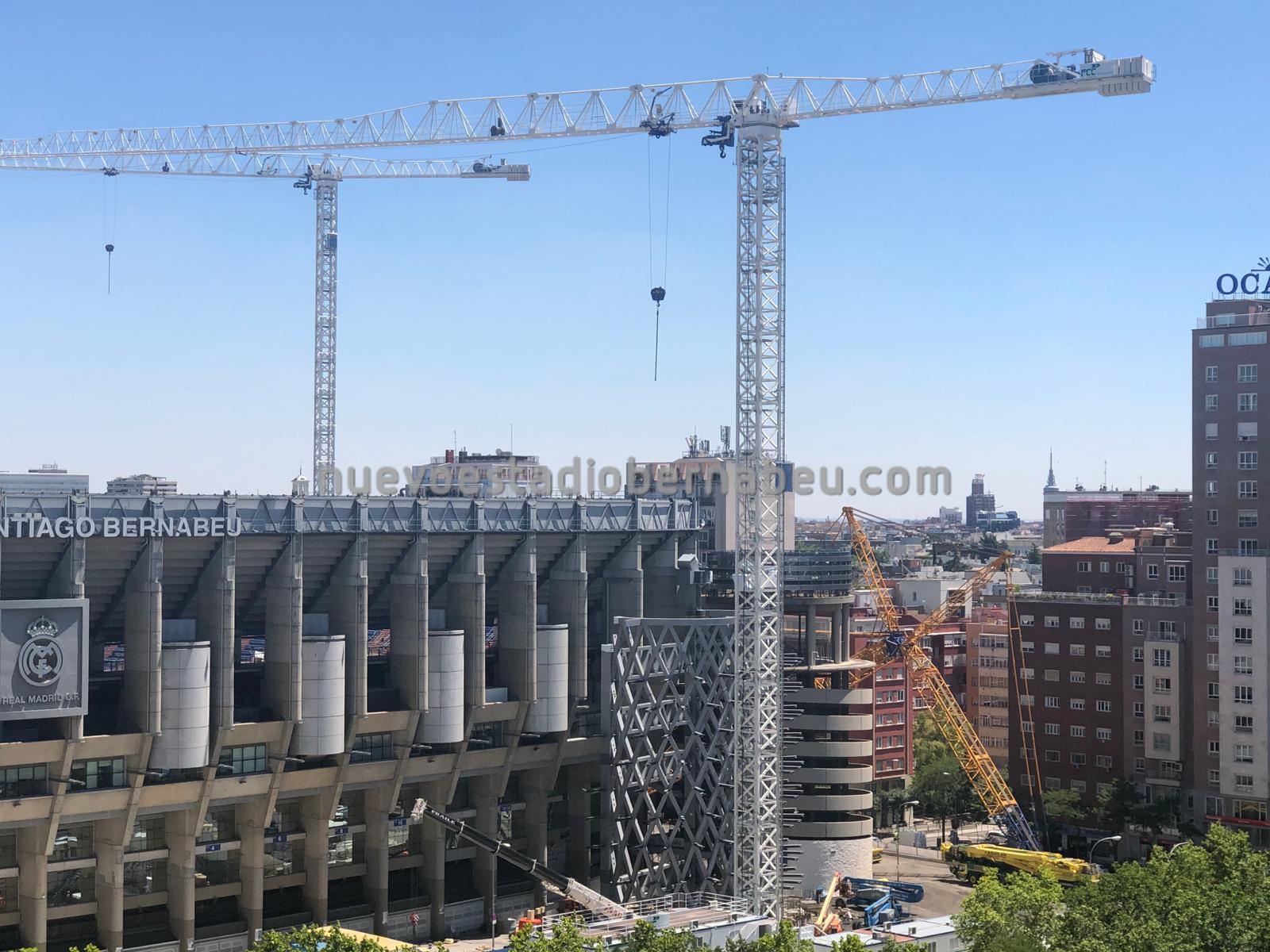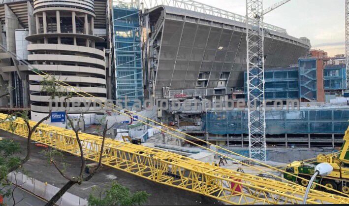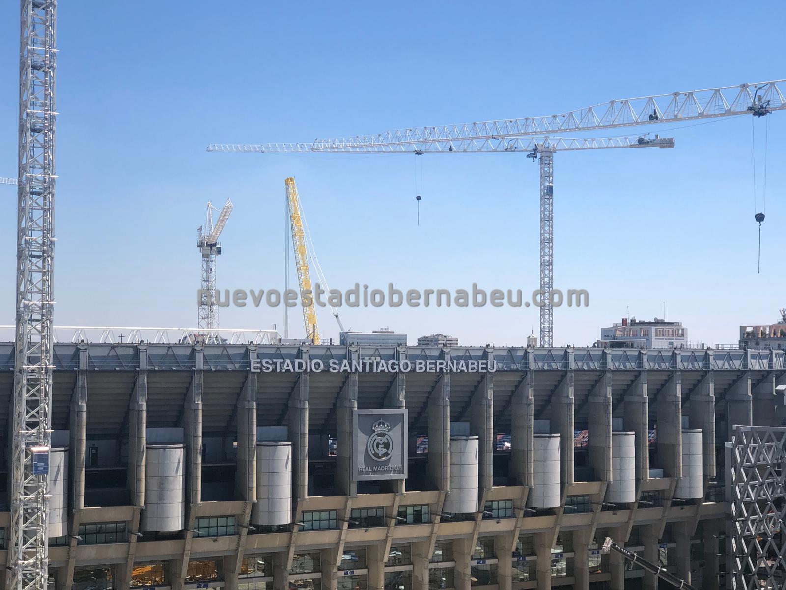 Los trabajos continúan sin parar en el Bernabéu, y como se puede comprobar en la pequeña galería de fotos que traemos, estos últimos días se han centrado en afianzar las posiciones de anclaje a cubierta a través de las torres B y C y de los nuevos pilares del lateral este.