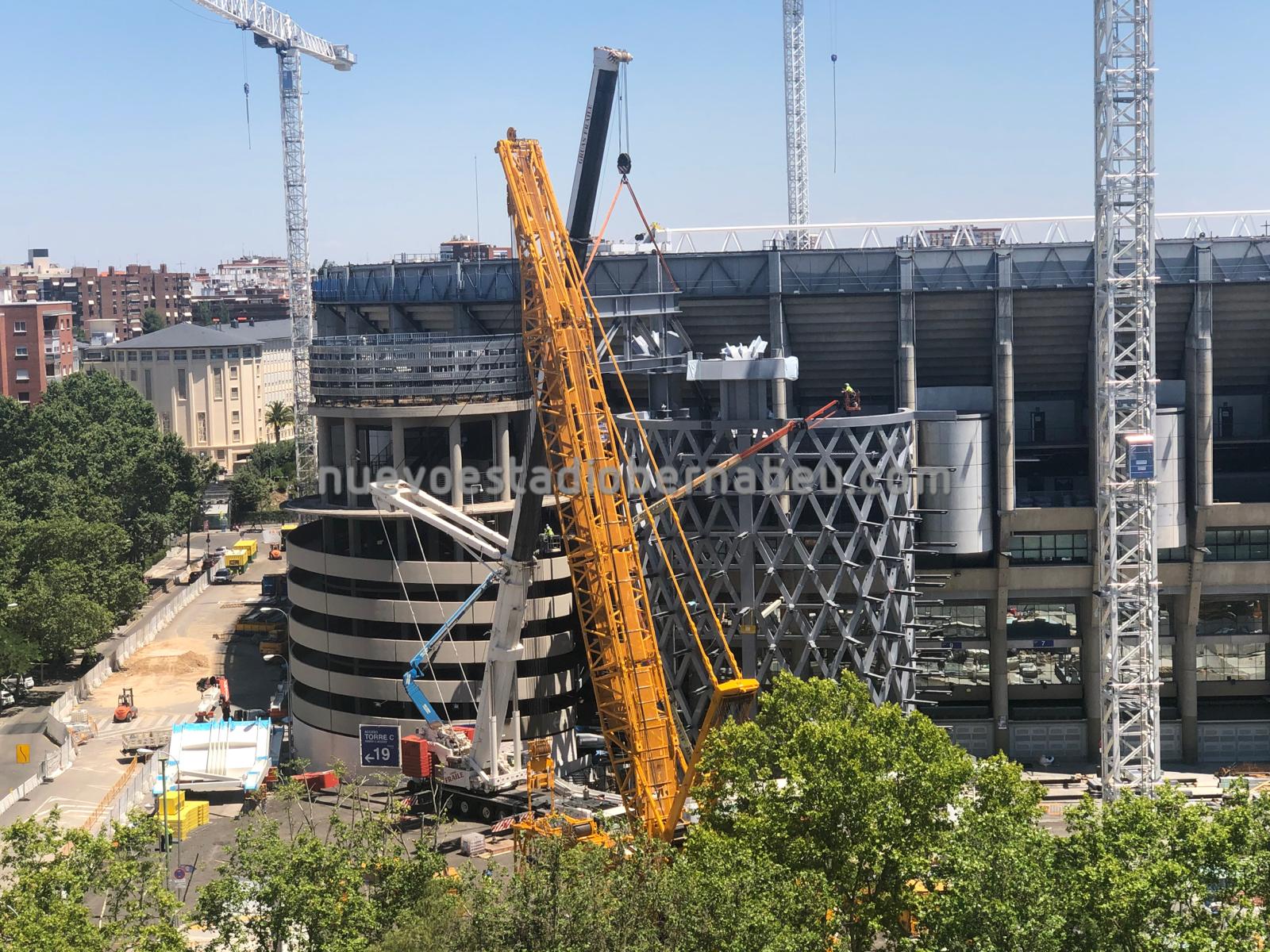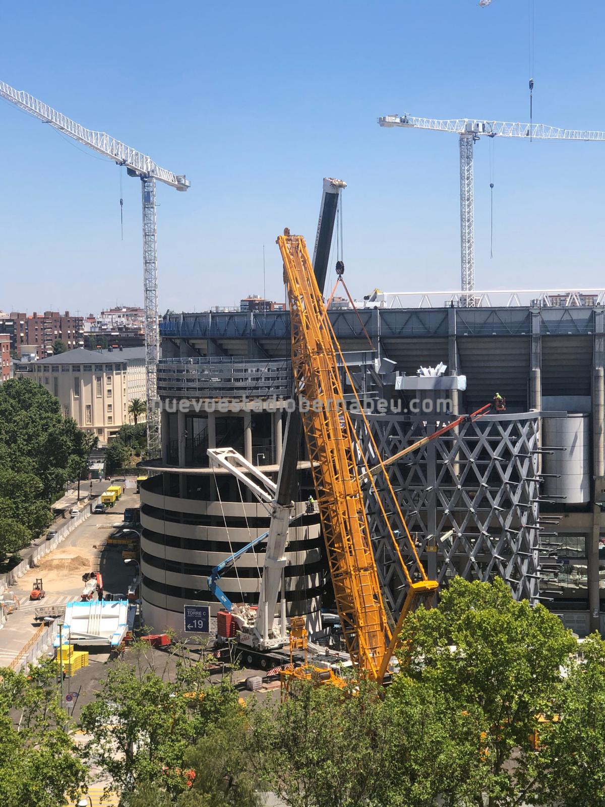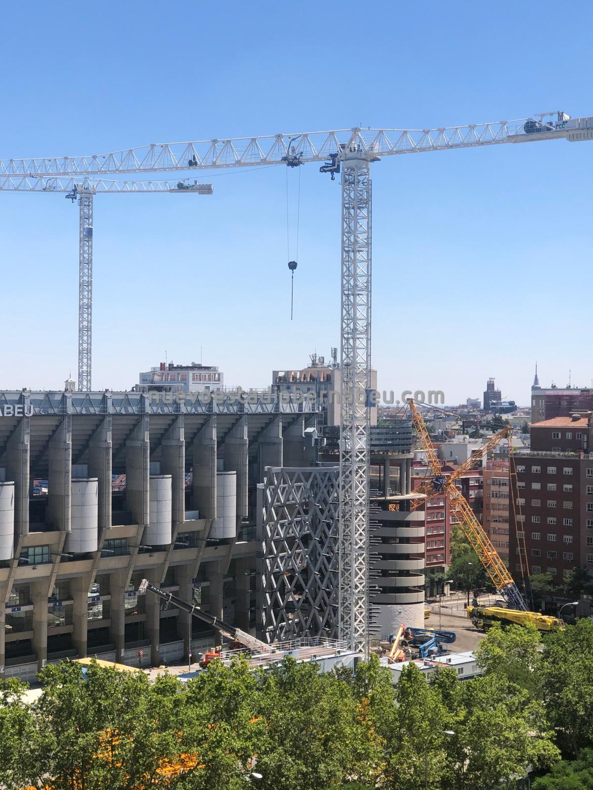 Los trabajos continúan sin parar en el Bernabéu, y como se puede comprobar en la pequeña galería de fotos que traemos, estos últimos días se han centrado en afianzar las posiciones de anclaje a cubierta a través de las torres B y C y de los nuevos pilares del lateral este.